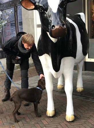 een koe in het dorp